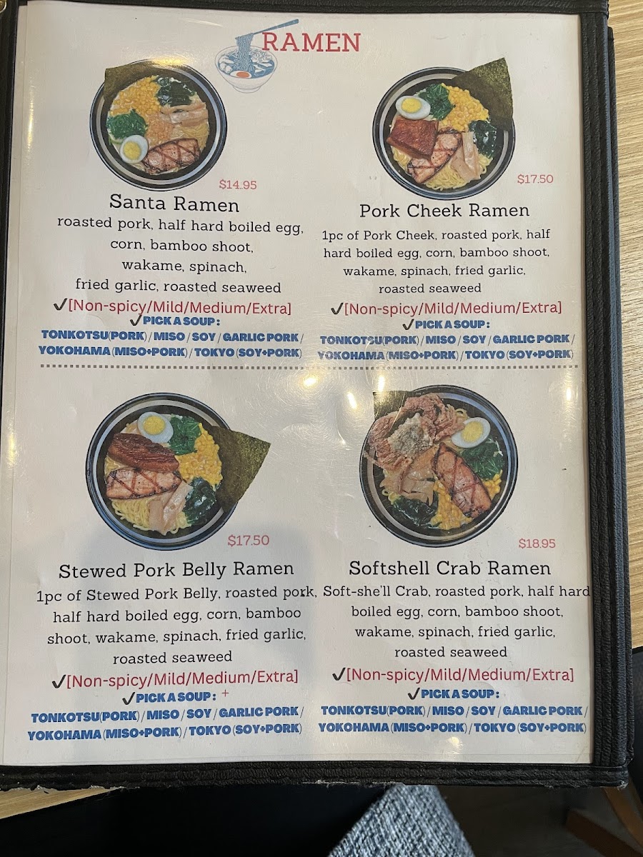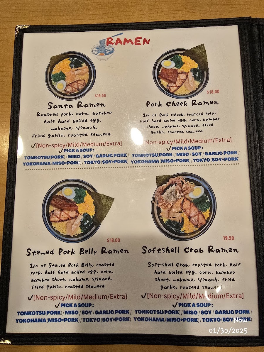 Customers rave about the rich, umami-filled broth and perfectly cooked noodles. The generous portions and friendly service enhance the experience, making Santa Ramen a perfect stop for casual dining or a hearty meal after shopping. Despite occasional wait times, the rich flavors make it well worth the visit!